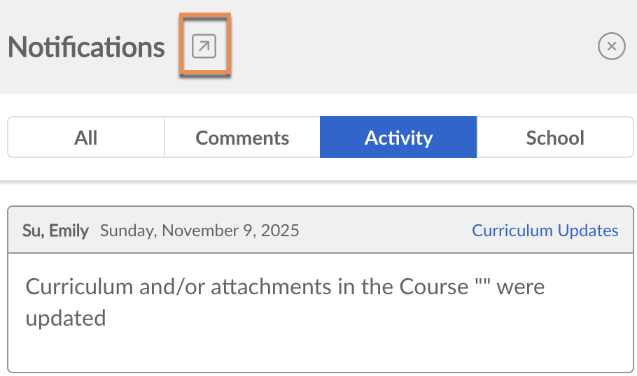 Your Activity Channel in the Notifications Channels (the envelop icon located at the top right side of your Atlas, next to your account name) contains a dynamic real-time feed of all curriculum activity in your Atlas system. Make purposeful changes to your student’s experience based on the concurrent enhancements to the curriculum made by your peers.
