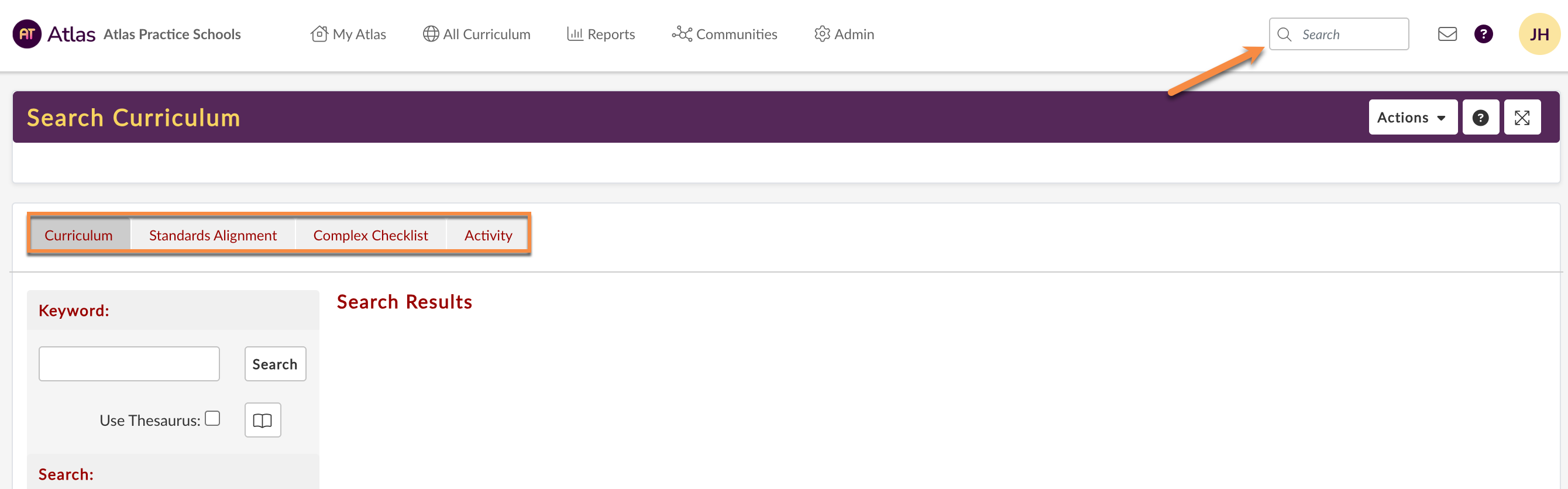 Click the magnifying glass in the Search bar then select Curriculum tab: