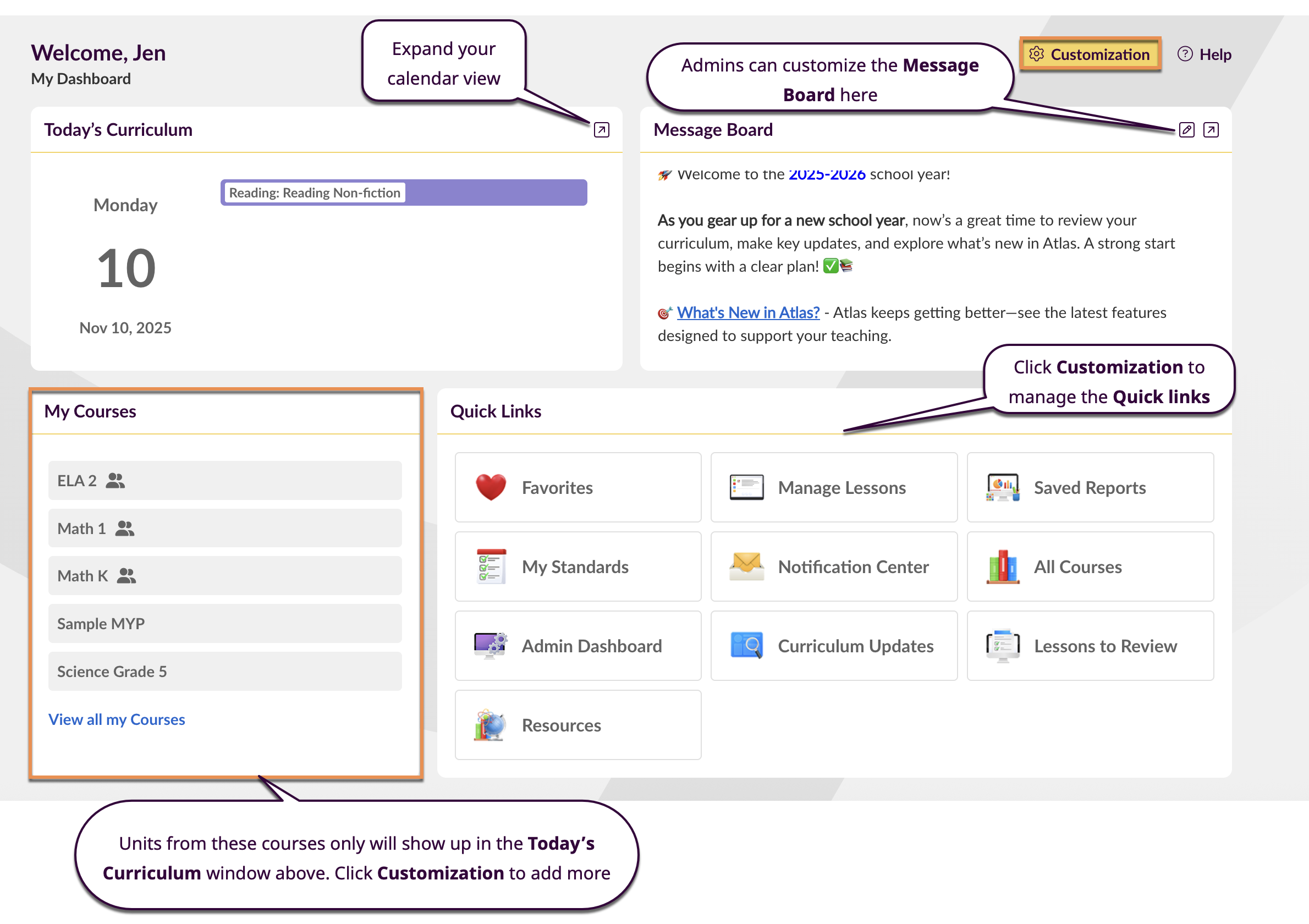 Atlas is designed for rapid access to the curriculum tools and information you need most, and personalized to accommodate the way you work.
