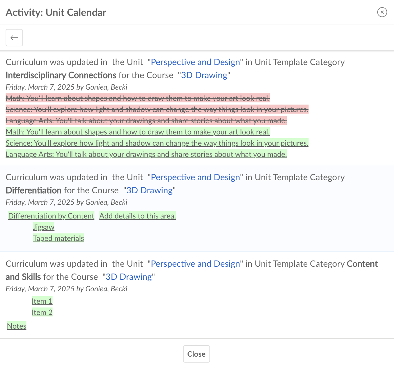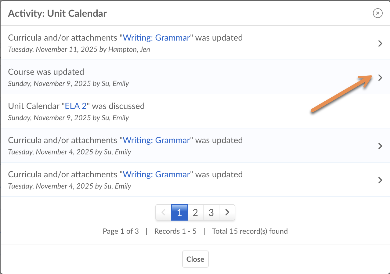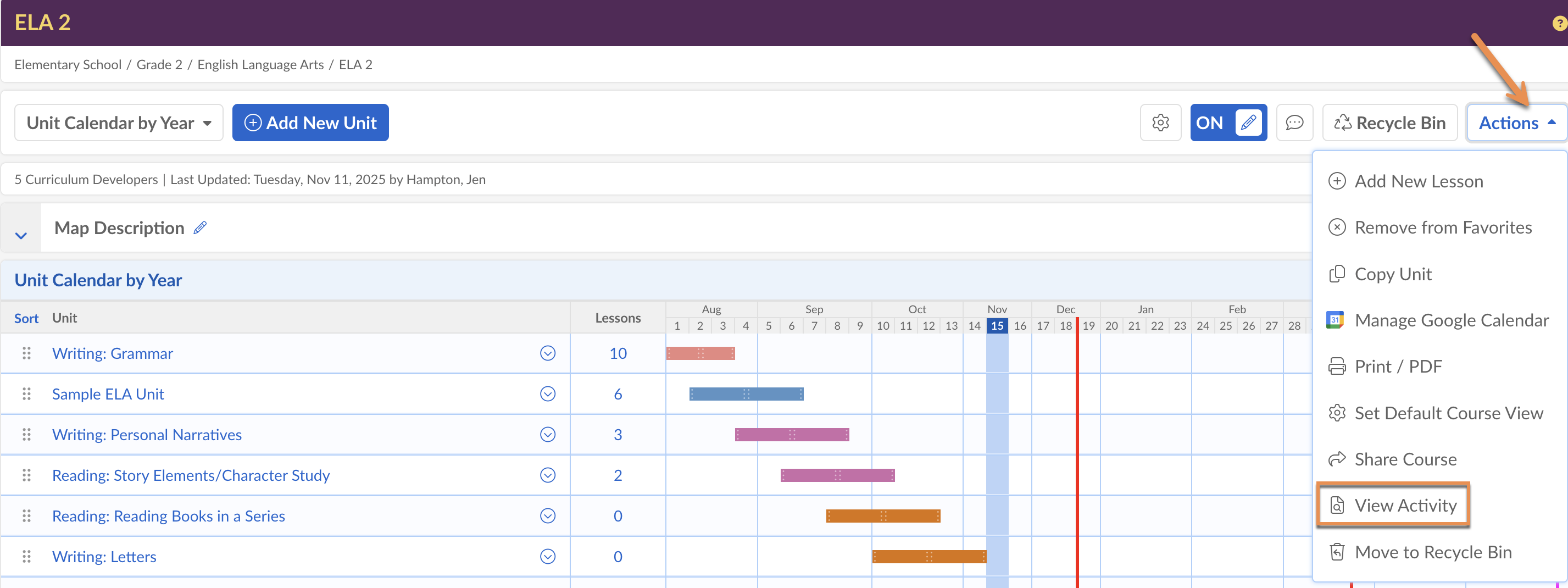 - In the Unit Planner view, click the Actions menu and select View Activity.