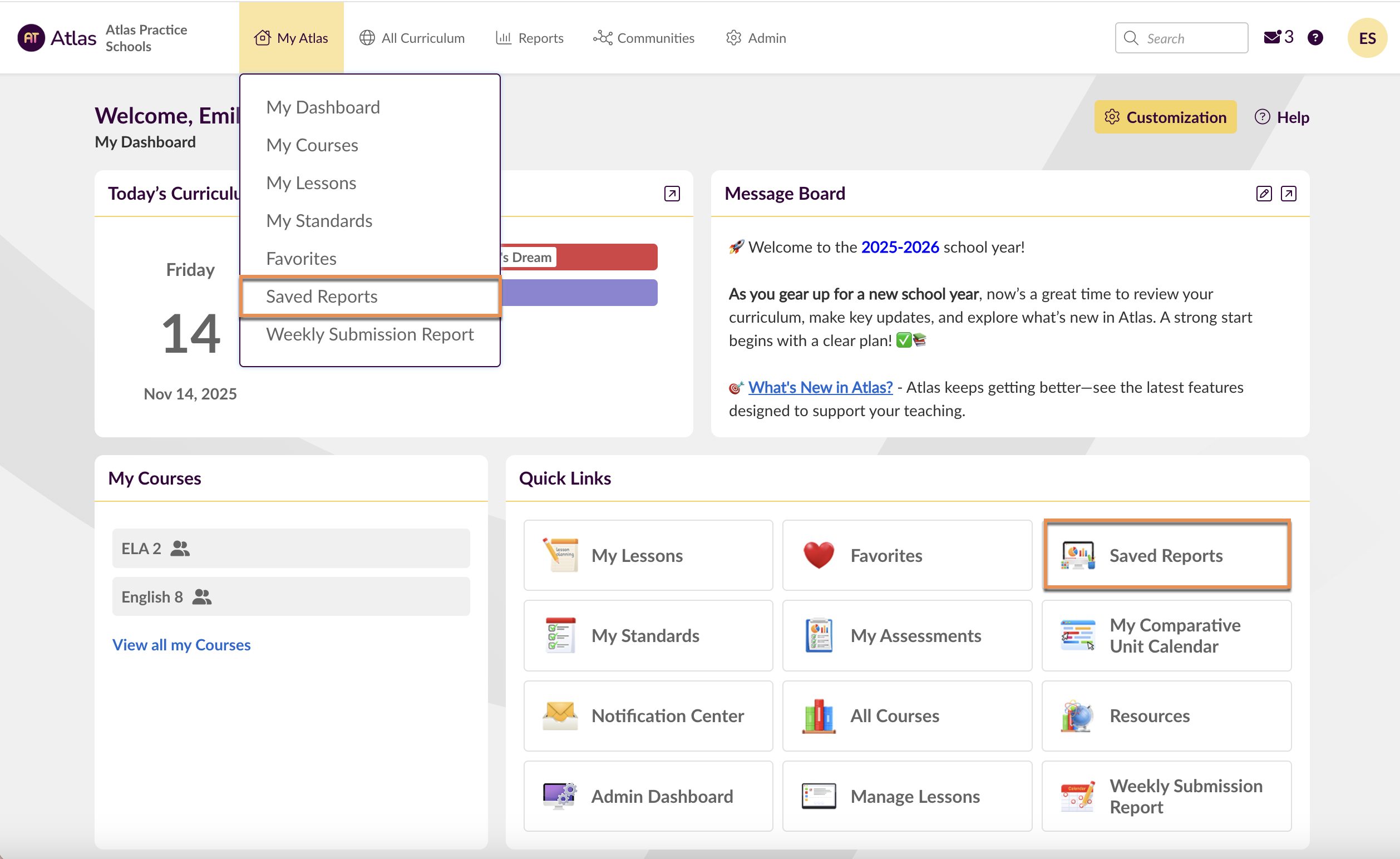 You’ll want to be familiar with the variety of Atlas views and reports available to you. Our support article onAtlas Reports can help you get started, and you’ll find a good webinar about Atlas Reports on ourVideos page. Your Atlas support team can help you run specific reports and curriculum views you have in mind, so feel free to contact us at support@onatlas.com.