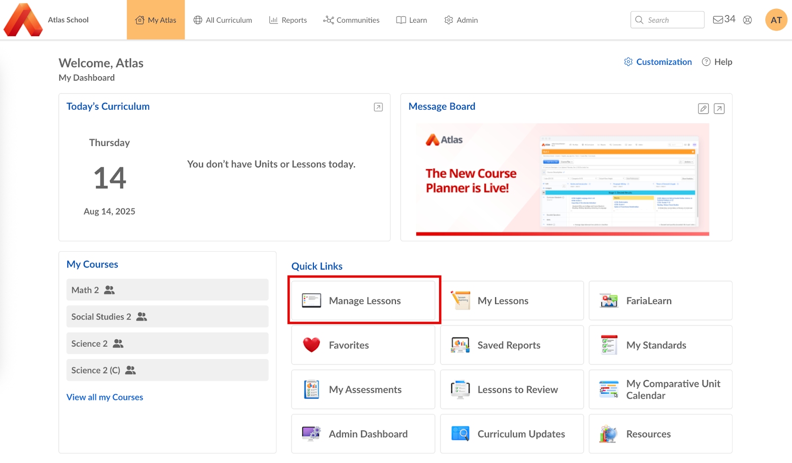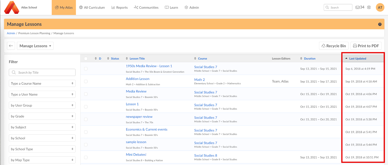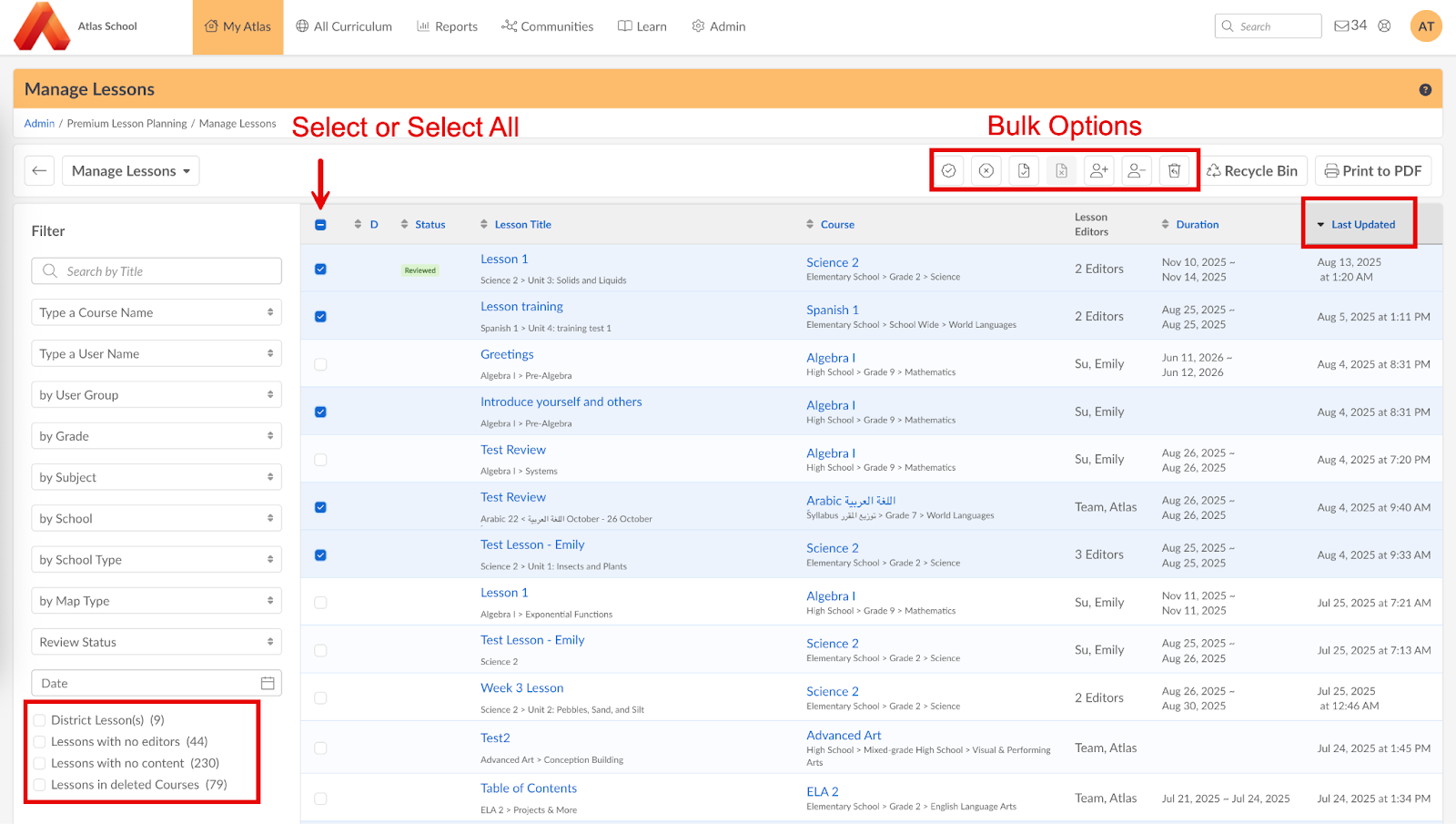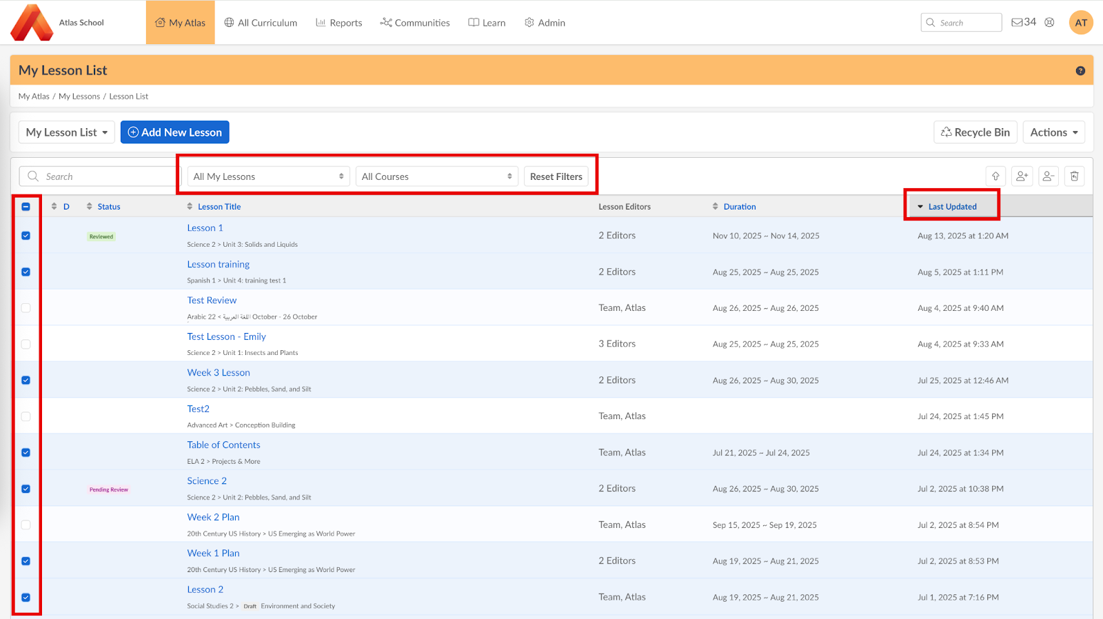 As lessons are a daily-use feature in Atlas, and lesson lists can become quite long, this guide will walk you through some helpful tips for cleaning up to start the new year fresh and ready to plan!